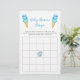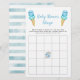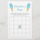 Have some fun at your baby shower with this bingo game card. Illustration of blue and mint green ice cream on a waffle cone. The bingo game asks the guests to guess what gifts the mummy-to-be will be receiving. Original illustration and design by Namibear Art Studio.©Namibear