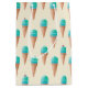 Hand drawn ice cream cones arranged into a pattern on a cream / light yellow background. The ice cream is a bright blue resembling blue moon or bubblegum, and each scoop is the perfect kind of round scoop. Some of the ice cream cones have cherries on top! A summer foodie pattern. The ice cream cones are arranged on a light sky blue background colour, but you can change the colour to be whatever you want!