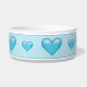 Destei's illustration of blue hearts in two different sizes. The background colour is light blue and the top and bottom have a thin blue border.