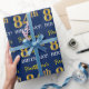 Blue, Imitation Gold Look "84th BIRTHDAY" Wrapping Paper