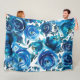 Blue Indigo Floral Flowers Elegant Shabby Chic Fleece Blanket