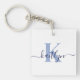 This modern keychain with your first name in a trendy script font in navy blue and your first initial in a modern cap font in light blue is perfect for your keys. It's stylish and trendy and yet very classic.