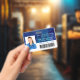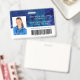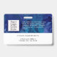 Personalise this horizontal ID badge with an employee photo, name, title, hospital/company name, location, employee ID number, and barcode. Background features blue ink watercolors. Back of badge features your logo and additional custom text fields for return information or other details. Perfect for medical or corporate facilities who need security identification.