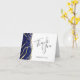 This elegant modern wedding thank you card features a blue alcohol ink border trimmed with faux gold foil and faux glitter. The customizable text combines the words "Thank You" in charcoal gray handwriting script and the names of the bride and groom in italic font on a white background.