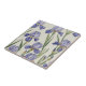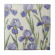 This artwork features a graceful cluster of blooming irises rendered in rich purples and soft blues, accented with warm touches of golden yellow at their centres. The petals are painted with delicate variation, giving each flower a sense of movement and natural softness. Slender green leaves rise and curve around the blossoms, adding height and rhythm to the composition. Unopened buds introduce a sense of growth and anticipation. Set against a light, neutral background, the vibrant colours of the irises stand out with refined clarity, creating a timeless botanical piece that feels both serene and sophisticated.