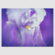 Gift tissue paper with image of a pale blue Iris flower against a blue background.