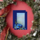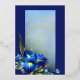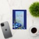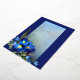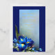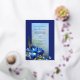 Lovely dark blue wedding invitation with a lighter blue text area and graphics of a large blue iris, on the bottom. Personalise the foil text for your wedding celebration.