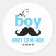 An adorable baby shower sticker with an illustration of a moustache. It's a cute and funny way to announce that you are having a baby boy. This invitation is also perfect for your moustache themed event.