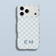 This soft blue and ivory checker iPhone case features a dusty cornflower monogram for a look that feels coastal, classic, and modern all at once. The airy grid pattern keeps it light and refined, while the serif initials add timeless personalization. Inspired by summer days, clean lines, and understated style, this case pairs beautifully with neutral wardrobes and relaxed coastal living.