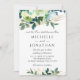 Blue Ivory Gold Floral Greenery Christian Wedding Invitation