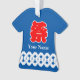 This hanging ornament is a classic blue happi coat, an outer jacket worn for festivals in Japan. The Japanese kanji character "matsuri," which means "festival," appears in red with a white outline, and an interlocking chain pattern appears in white along the bottom. In between is a space to add your own name, or you can delete the text for just the plain happi coat pattern.