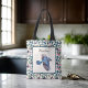 This lovely tote bag features a stunning blue jay bird on an off-shite background with your monogram name above it. Beautiful red, pink, purple and blue-purple berries adorn the background. Personalise this pretty bag by typing in your name where indicated.