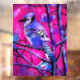 Blue Jay Bird on Tree Branch Pink Abstract Art