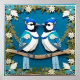 Colourful paper art depicting two blue jays perched on a branch, encased within a decorative frame. The design showcases intricate craftsmanship, vibrant hues, and harmonious details evoking nature's beauty and creativity.
