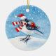 This cute bird outfitted in snappy red and white hat and scarf will be happy to adorn your Christmas tree, but you just might want to keep him on display all winter. Matching greeting cards, stickers and other items with this image also available in my Zazzle store.