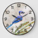 Blue jay in a pine tree with snow large clock