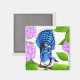 Original fine art painting of a Blue Jay in Hydrangea flowers by artist Carolyn McFann of Two Purring Cats Studio printed on a quality magnet for wild bird fans.