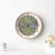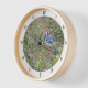 This clock features a photograph of a brightly coloured Blue Jay enjoying a Southern Wax Myrtle bush, taken in the artist's Certified Backyard Wildlife Habitat.