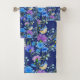A Colourful Bathroom Towel Set In Blues and Violets. Cheerful Blue Jays In Spring
