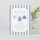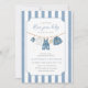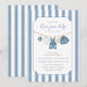 Celebrate the joyous arrival of your little boy with our "Blue Jean Baby" baby shower invitation. This charming card features soft denim details like cute baby clothes and trendy stripes as background.