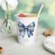 Introducing adorable paper cups for a delightful baby shower that embodies the essence of country charm! This enchanting design showcases a whimsical blue jean print coquette bow, adorned with exquisite pearl and lace detailing that adds a touch of elegance. The beautiful contrast against the soft white background creates a striking visual appeal.