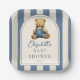 Blue Jean Denim Teddy Bear Baby Shower Paper Plate