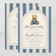 This cute baby shower invitation, featuring a teddy bear wearing blue jean dungarees, can be personalized with all your special baby shower details and registry QR code on the reverse. Designed by Thisisnotme©