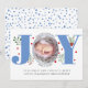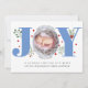 Blue Joy First Christmas holiday photo baby birth Announcement