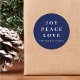 Blue Joy Peace Love Minimal Christmas Family Name Classic Round Sticker