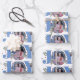 Blue Joy with berries Christmas holiday photo Wrapping Paper Sheet