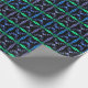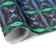 This striking wrapping paper features a bold blue kaleidoscope fractal pattern arranged in a seamless geometric repeat. Intricate symmetrical shapes and layered textures create a dramatic design that blends abstract symmetry, psychedelic colour, and modern digital art into a vibrant decorative pattern.