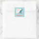 Cute animal blue kangaroo with baby roo in pouch with knitting needles and ball of yarn with flowers background for knitters and yarn crafters, baby blanket or clothing knitters.