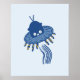 Blue Kawaii Octopus UFO Poster