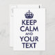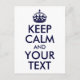Dark blue customisable "Keep Calm and Your Text" design. Edit the text to create your own postcard with a custom text message. If you need smaller font for a longer word, we suggest selecting the entire design before reducing the size. You can also change the white background colour.