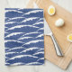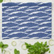Blue and white kitchen towel with illustrative, graphic pattern of waves. Pattern inspired by traditional japanese patterns and indigo fabrics.