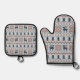 Festive red and blue oven mitt and pot holder set design inspired by classic Nordic knitted Christmas sweaters, featuring a delightful pattern of poinsettias, reindeers, Christmas trees, and snowflakes. This charming kitchen accessory set not only protects your hands while cooking but also adds a touch of holiday cheer to your kitchen decor.