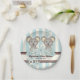 The product design features baby twin koalas surrounded by flowers. The adorable animal cartoon with pastel blue stripes makes cute and unique paper plates with personalised text for boy twin baby shower, birthday, and more!