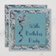 Elegant personalised / personalised custom 55th birthday party celebration invitations for women and girls. On the front of these glamourous birthday party invites is a printed image of blue lace with a pretty white doily mat with a blue flower and silver leaf and a trailing blue ribbon. Behind the blue lace is a small border of silver leafs and a larger border of trendy glitz glam border of bling rhinestones jewels diamonds, all printed on a soft silvery background. The reverse of this female birthday card has the same images but without the silvery background. These glamourous, elegant, stylish, sophisticated, girlie invites are decorated / printed on both sides. All text is fully customisable to meet your requirements, if you need any assistance in customising your product please contact me through my store and i will be very happy to help you.