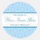 Stylish vintage-style "Handmade By..." stickers in a blue lace design. Personalise with your own name/business name and website/blog address.