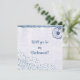 Blue lace on burlap Will you be my bridesmaid request for sophisticated country chic wedding