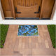 Decorative doormat that features a photo image of gorgeous, blue Lacecap Hydrangea blooms. A lovely, floral design! Use indoors or in covered entryway areas.