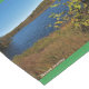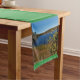 A table runner with a photo of a small lake on a green background