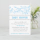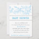Adorable baby lambs prance across this vintage style baby shower invitation. Also available in pink and green.