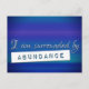 Beautiful postcard with colourful background and bold statement that says "I am surrounded by abundance." The law of attraction matches your vibration, so feel that your life is full of wealth and you will attract more money. Don't believe it? Try counting everything you are grateful for. Now can you see how many conveniences and luxuries exist in your daily life? Make a commitment of writing in your gratitude journal every day. List at least three things that you are grateful for each day. Work up to ten things a day, then get to a place where you can count one hundred wonderful things to be thankful for. Eventually, you will begin to mindfully meditate, noticing what is good and right in every single moment.