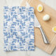 Blue Layered Watercolor Leaves Pattern Tea Towel