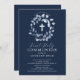 Beautiful First Communion invitations featuring a soft blue leaf wreath and cross set on a dark navy blue background. Flip our invitation over to view a coordinating back for an extra special touch. Visit our shop to view our entire leaf collection.