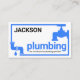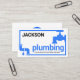 An all white cover features a blue leaking pipe faucet border frame design. Over at the upper left corner is your prestigious name with the oversize blue business name "plumbing" in the opposite direction. Underneath this is a slogan caption option; Change the captions to both these items to suit your own service needs.