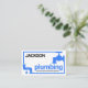 Overleaf, at the top is a blue faucet logo you can use followed by your prestigious name and the contact details.