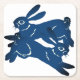 Blue Leaping Rabbit Hare Bold Animal Pattern Square Paper Coaster