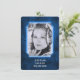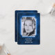 Worn blue leather frame with slit corners for Graduation Party invitation. Frame is customised to insert your graduate's photo for any school year.